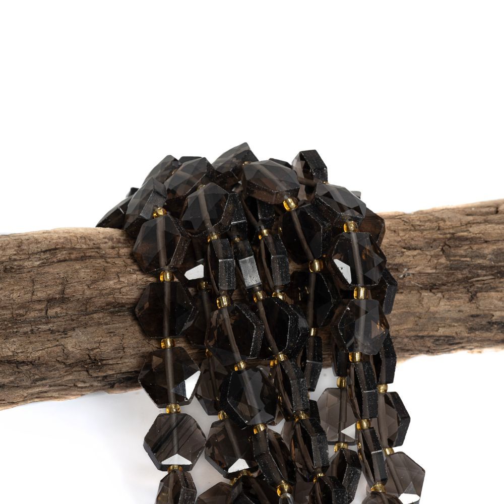 Obsidián hnedý korálky 12mm hexagony brúsené polšnúra