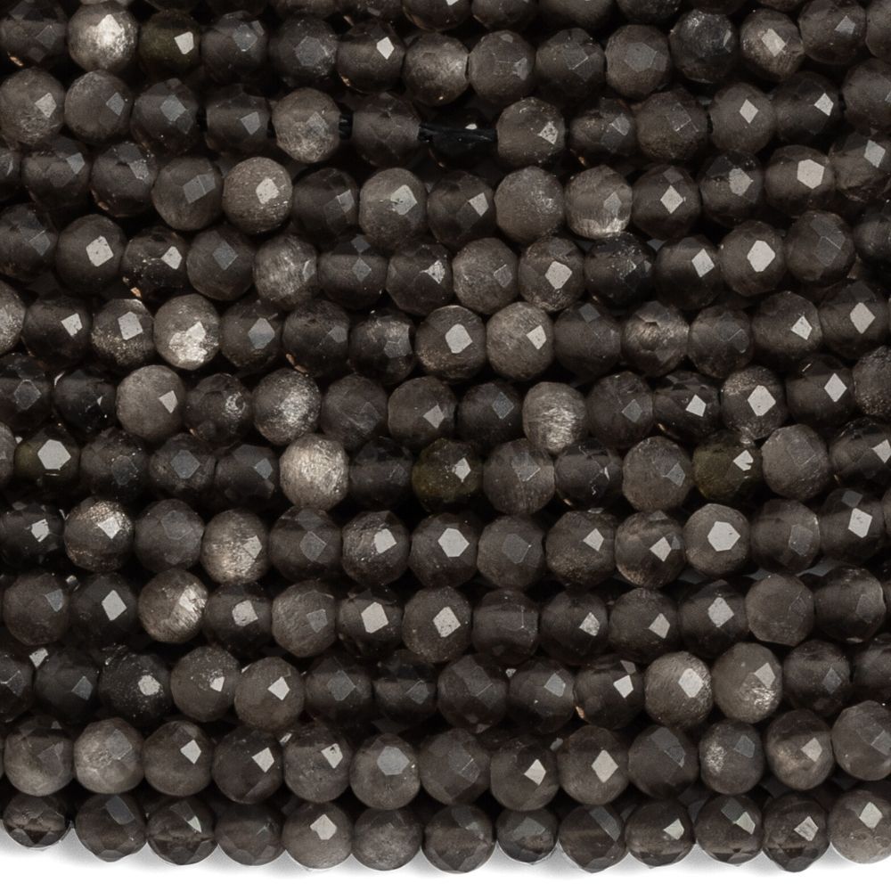 Obsidián strieborný korálky 3mm brúsené šnúra
