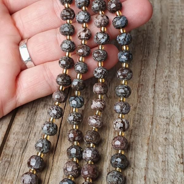 - Obsidián vločkový hnedý korálky 6x8mm rondelky brúsené polšnúra