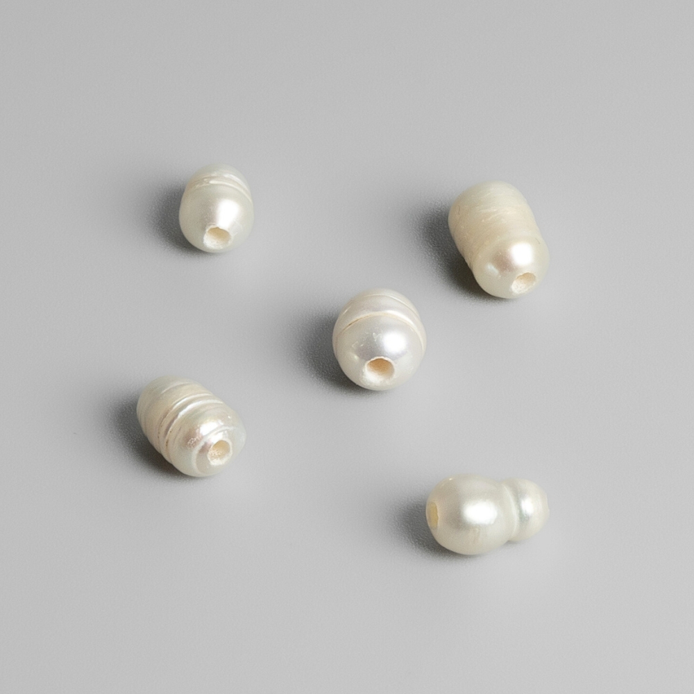 Kultivované riečne perly s pekným tučnučkým tvarom budú skvele vyzerať na náhrdelníkoch, ale aj na náramkoch. Každá perlička má svoj jedinečný tvar. Navliekajte buď dvojmo na tenučkú gumičku alebo na poplastované lanká. Dierky na korálkach sú pomerne drobné.