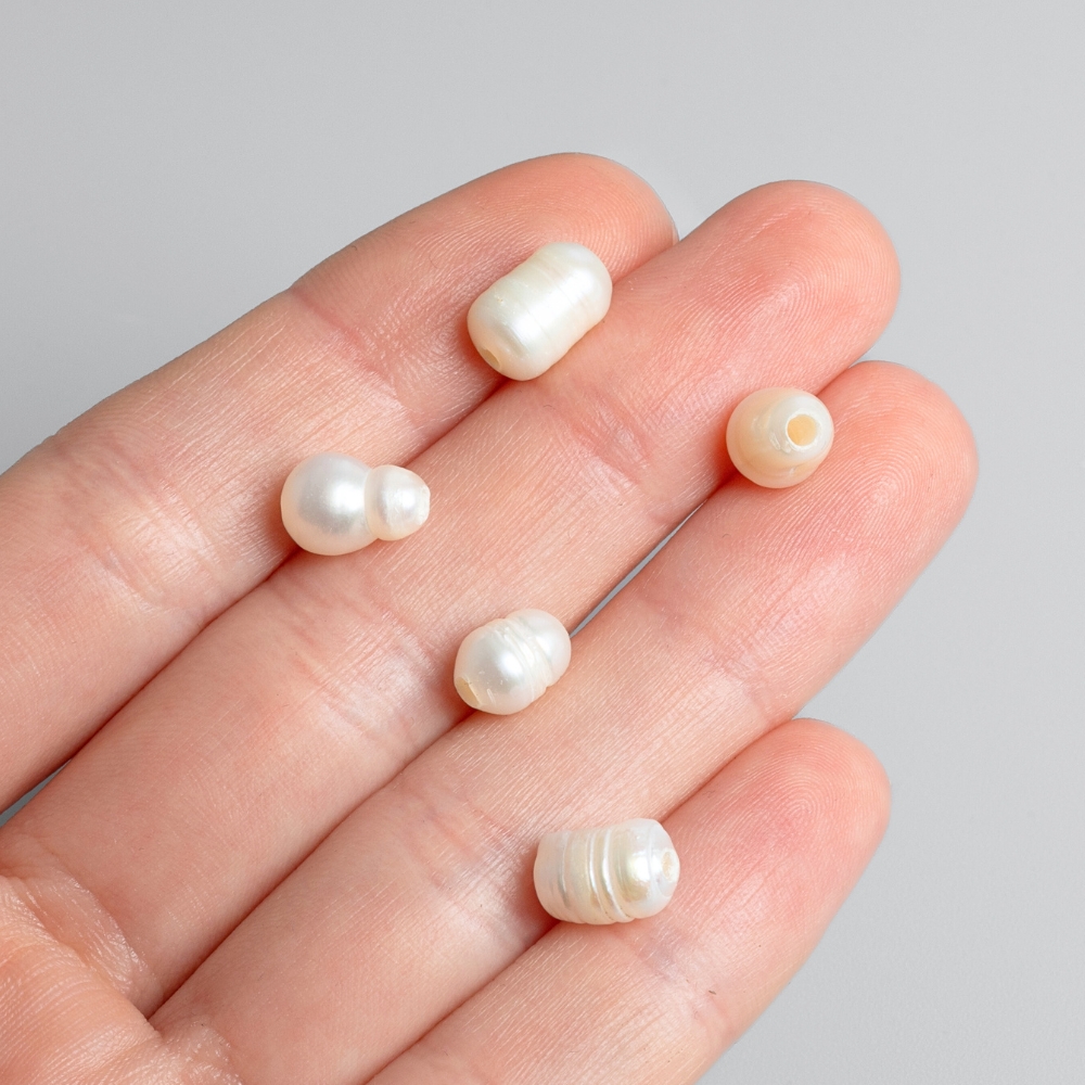 Riečne perličky v jemnej smotanovej farbe v zhruba 6 - 7 mm veľkosti, ktoré krásne vyniknú na elegantnom náhrdelníku. Navliekajte ich na poplastované lanko a pomocou kaloty a zamačkávacieho rokajlu pripevnite ukončovacie komponenty.