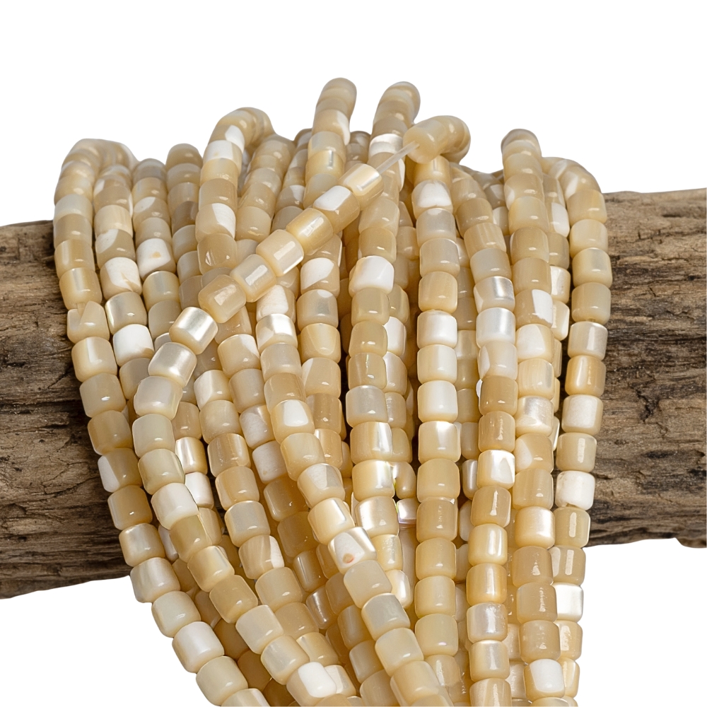 Perleť béžová korálky 4x4mm valčeky šnúra