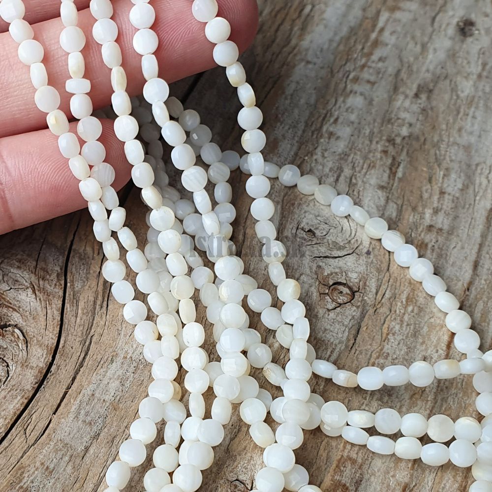 - Perleť biela korálky 4mm peniažtek polšnúra