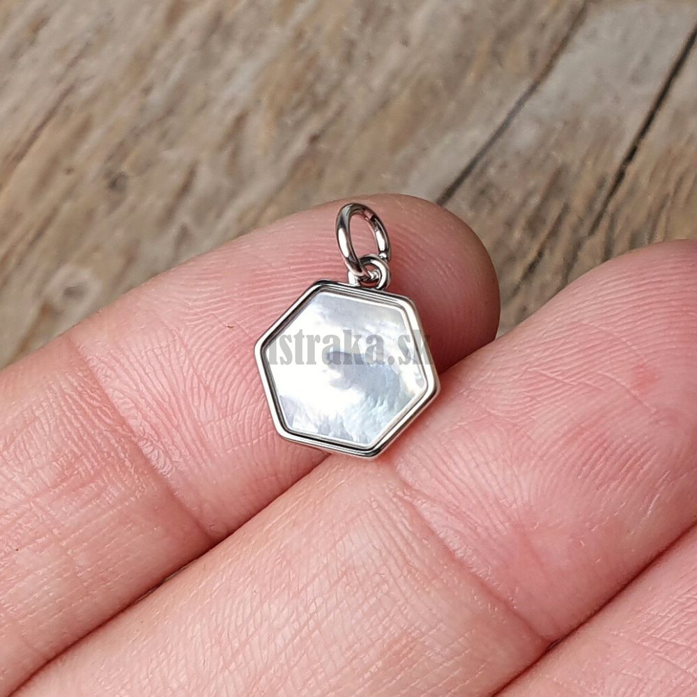 • Perleť prívesok 12x11mm šesťuholník strieborný rám
