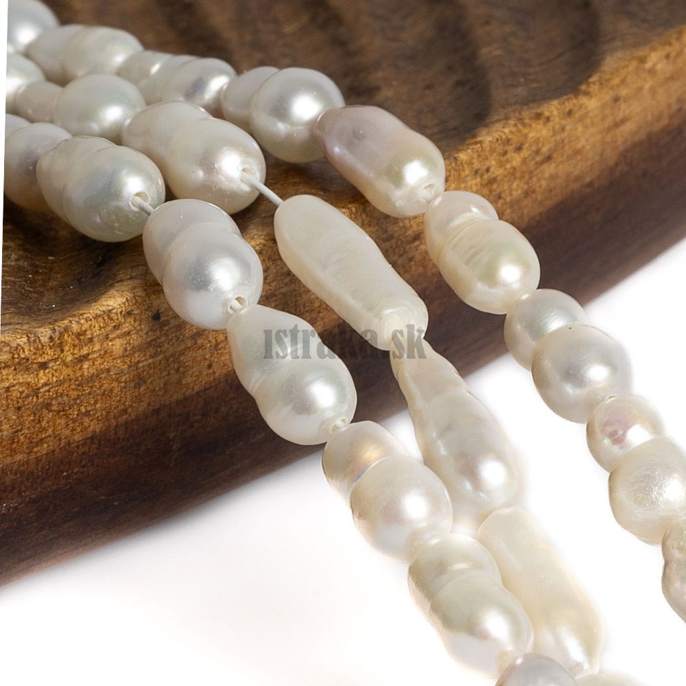 • Perly riečne korálky 4-5mm podlhovasté nepravidelné šnúra