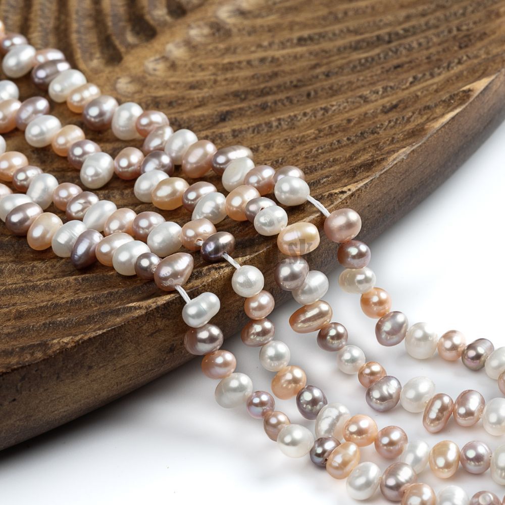 - Perly riečne korálky 6-7mm nepravidelná slza mix farieb šnúra
