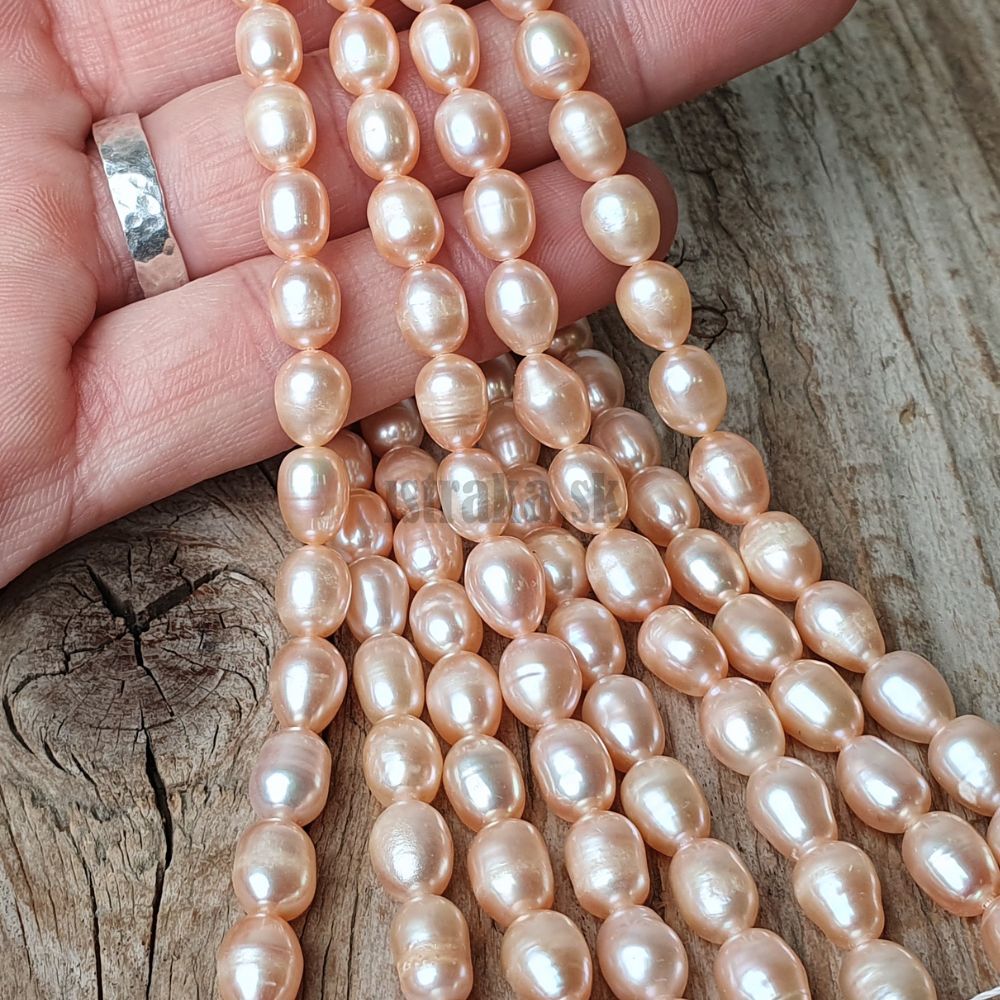 - Perly riečne korálky 6-7mm podlhovasté marhuľové šnúra