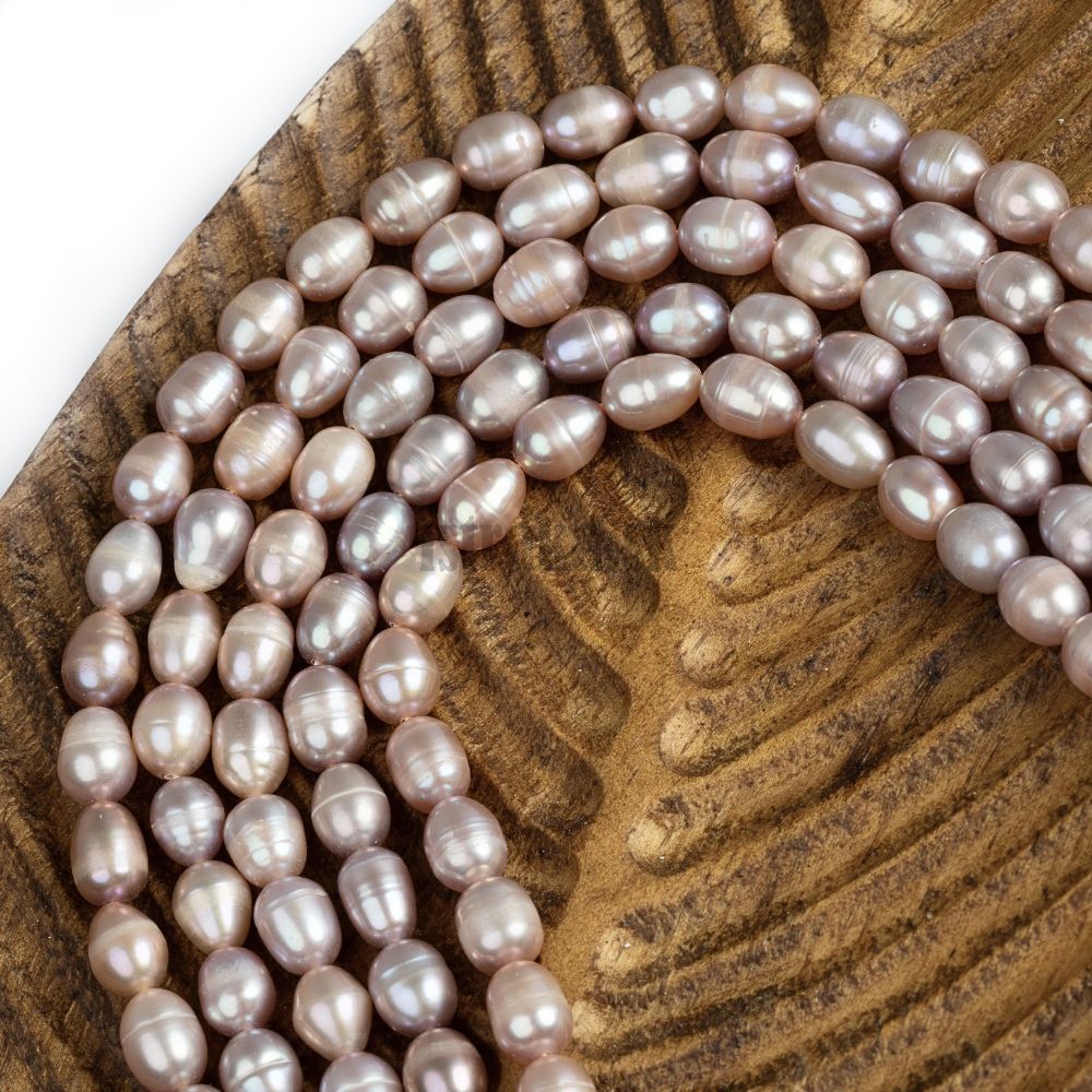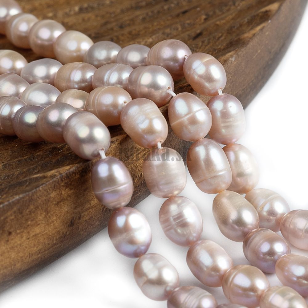 Perly riečne korálky 6-7mm podlhovasté svetlofialové šnúra