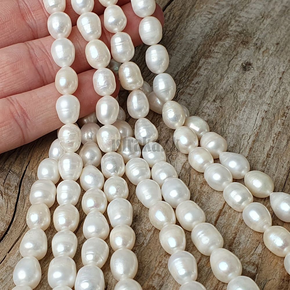 - Perly riečne korálky 8-9mm podlhovasté šnúra
