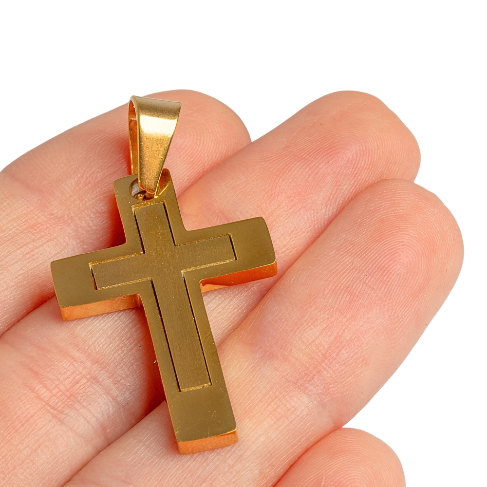 Prívesok kríž 30mm zlatý nerez