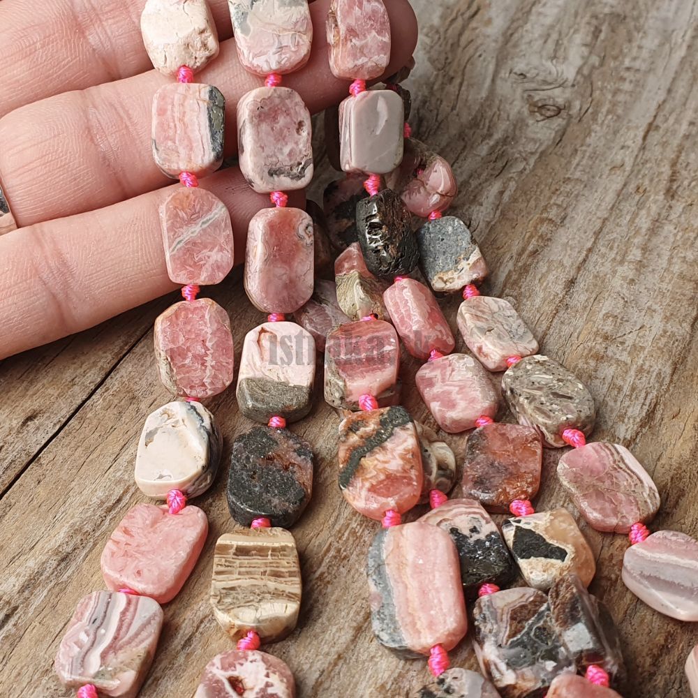 Rodochrozit korálky 10x15mm obdĺžnik polšnúra