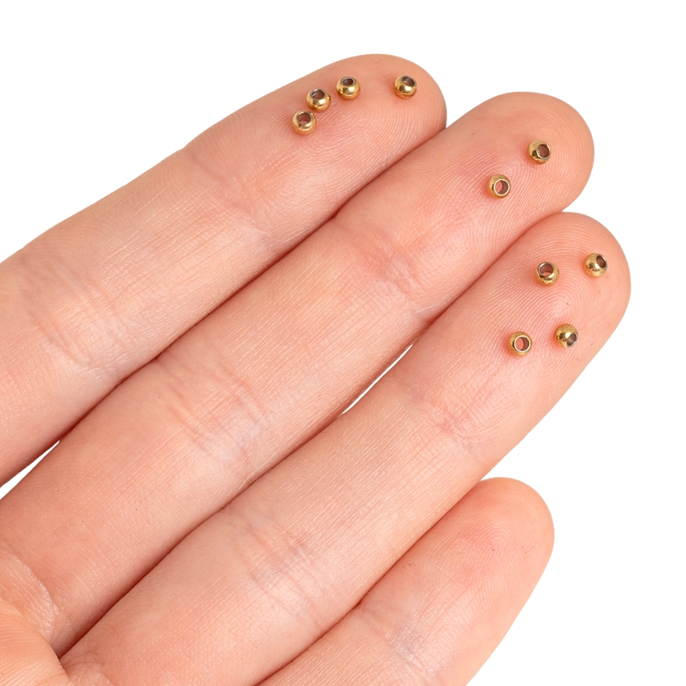Balenie desiatich mini korálok z nerezovej ocele zlatej farby. Rondelky majú kvalitnú IP povrchovú úpravu. Ideálne sú do náramkov medzi minerálne korálky.