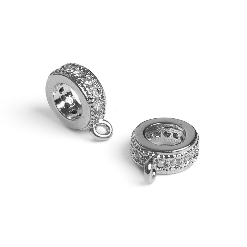 • Rondelka so závesom korálka strieborná s bielymi zirkónmi