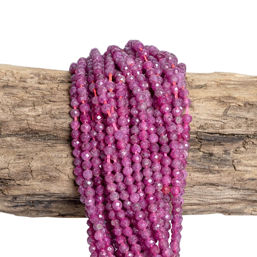 Minikorálky z prírodného minerálu rubín s drobným výbrusom a lesklým povrchom. korálky sú jedny z najmenších v našej ponuke, navliekajte ich na poplastované lanko alebo na 0,5mm nylonové šnúrky. Na iný návlekový materiál vám nevojdú.