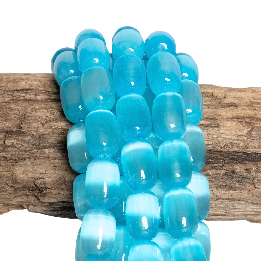 • Selenit korálky 8x12mm súdky modré  polšnúra