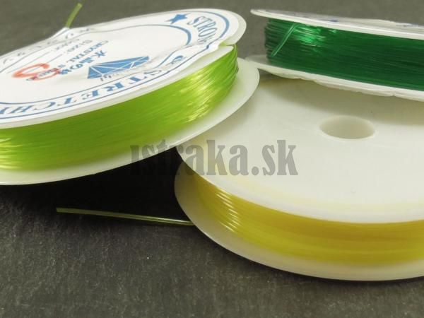 Elastické gumičky exitujú vo viacerých typoch. Najpoužívanejšou a najobľúbenejšou je elastický silon v hrúbke 0,8 mm. Používa sa najmä na guličky s priemerom 8 mm. Je to základ, ktorým isto nič nepokazíš. Na 10 mm a väčšie korálky, zo skla alebo drahých kameňov, treba dávať 1 mm silon. Na menšie korálky (6 mm a menej) je vhodné použiť elastický silon s hrúbkou 0,6 mm alebo 0,4 mm. Ako alternatíva sa dá použiť viacvláknová gumička, ktorá je tvorená malými vlákienkami elastického silonu. Tá je u niekoho dokonca obľúbenejšou verziou, než obyčajná gumička. Niekomu naopak nevyhovuje, lebo ju treba navliekať niekedy dvojmo. Preto radíme vyskúšať a vytvoriť si vlastný názor. A ak túžiš ísť do najmenších detailov, skombinuj farbu gumičky s farbou koráliek na tvojom náramku. Áno, aj takú možnosť ti ponúkame.
