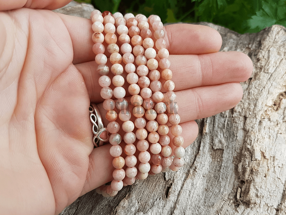 - Slnečný kameň korálky 4mm svetlejší mix šnúra
