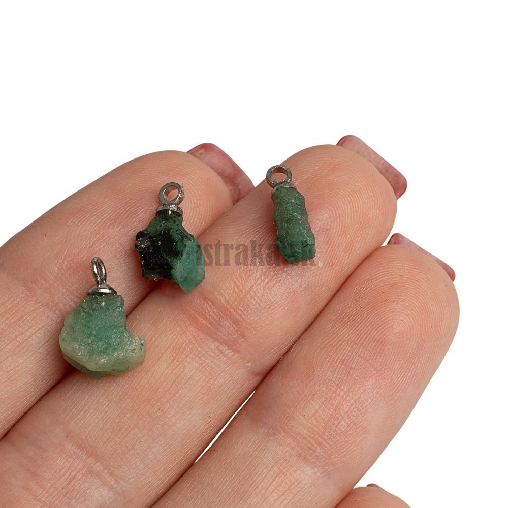 • Smaragd surový miniprívesok so starostrieborným očkom z nerezovej ocele