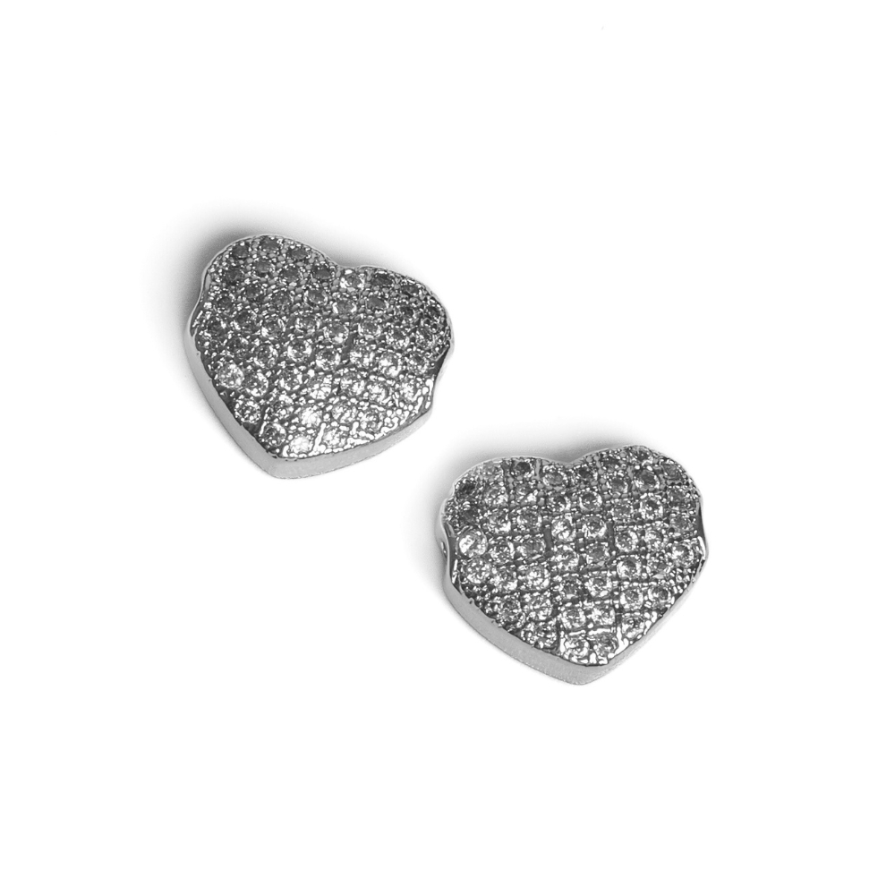 Korálka srdce ploché zo striebornej zliatiny kovov a bielymi kubickými zirkónmi o veľkosti 9 mm.
