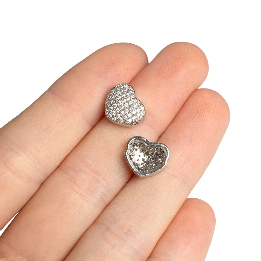 • Srdce korálka plochá strieborná s bielymi zirkónmi