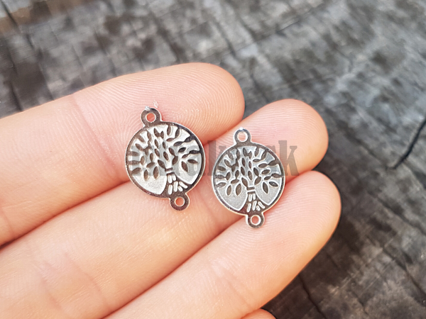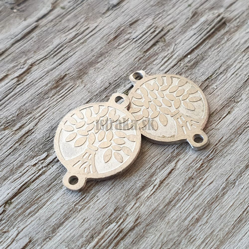Nerezový medajlonik s uškami po oboch stranách - môžete ho teda využiť ako šikovný medzikus do šnúrkových náramkov. Odporúčame ho však aj ako zaujímavý kúsok do stredu náramku z nugetiek alebo menších brúsených kamienkov :) Motív stromu života je obojstranný :)