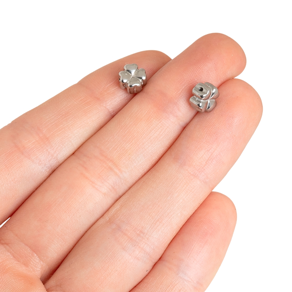 Nerezová korálka štvorlístok pekne doplní vaše náramky z kameňov, najviac sadne k 4mm až 6mm korálkam ;) Nehrdzavie a neošúcha sa. Kombinujte s ónyxom, ametystom, rodonitom alebo s tanzanitom či akvamarínom.