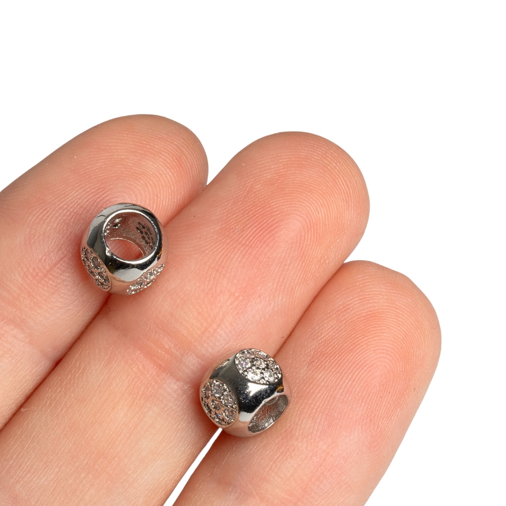 • Súdok korálka veľkodierová strieborná s bielymi zirkónmi