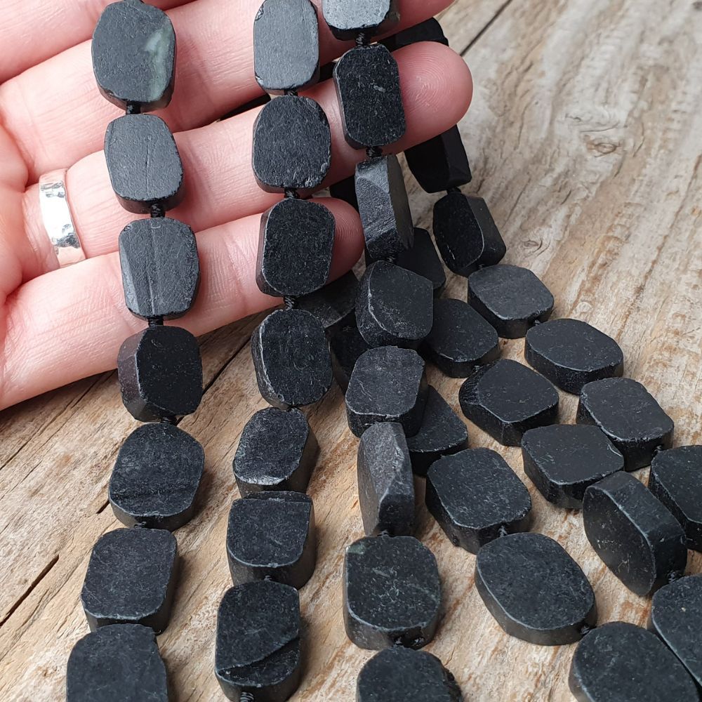 Šungit korálky 11x15mm obdĺžnik polšnúra