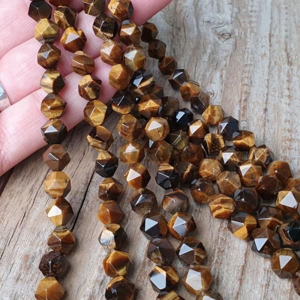 - Tigrie oko korálky 8mm bicone výbrus šnúra