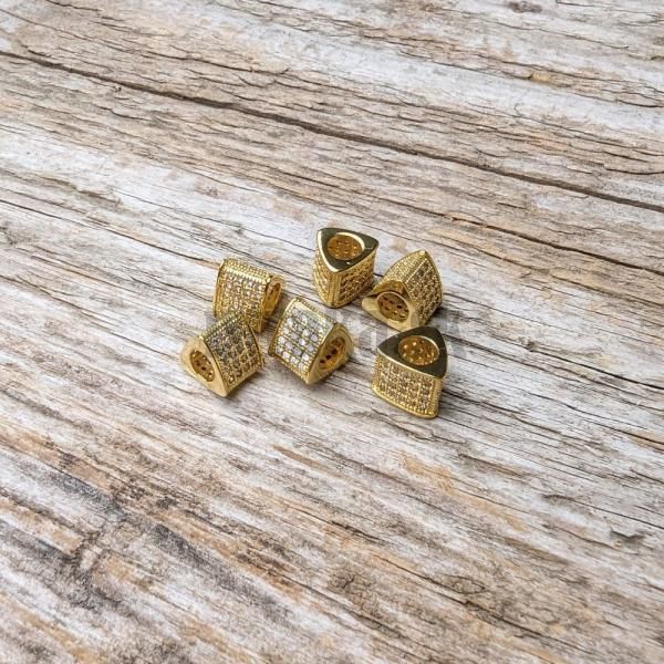 • Trojhran korálka zlatá s bielymi zirkónmi