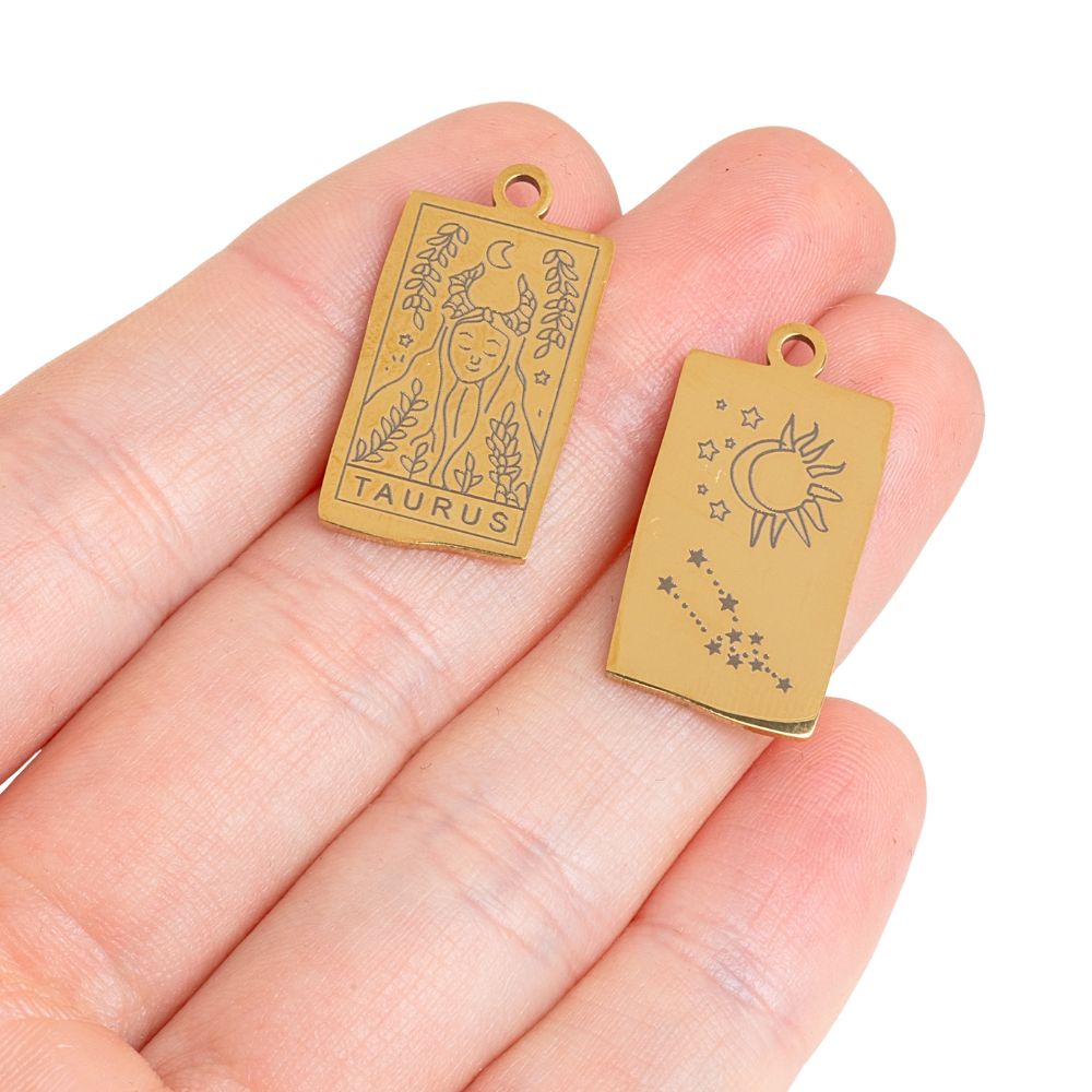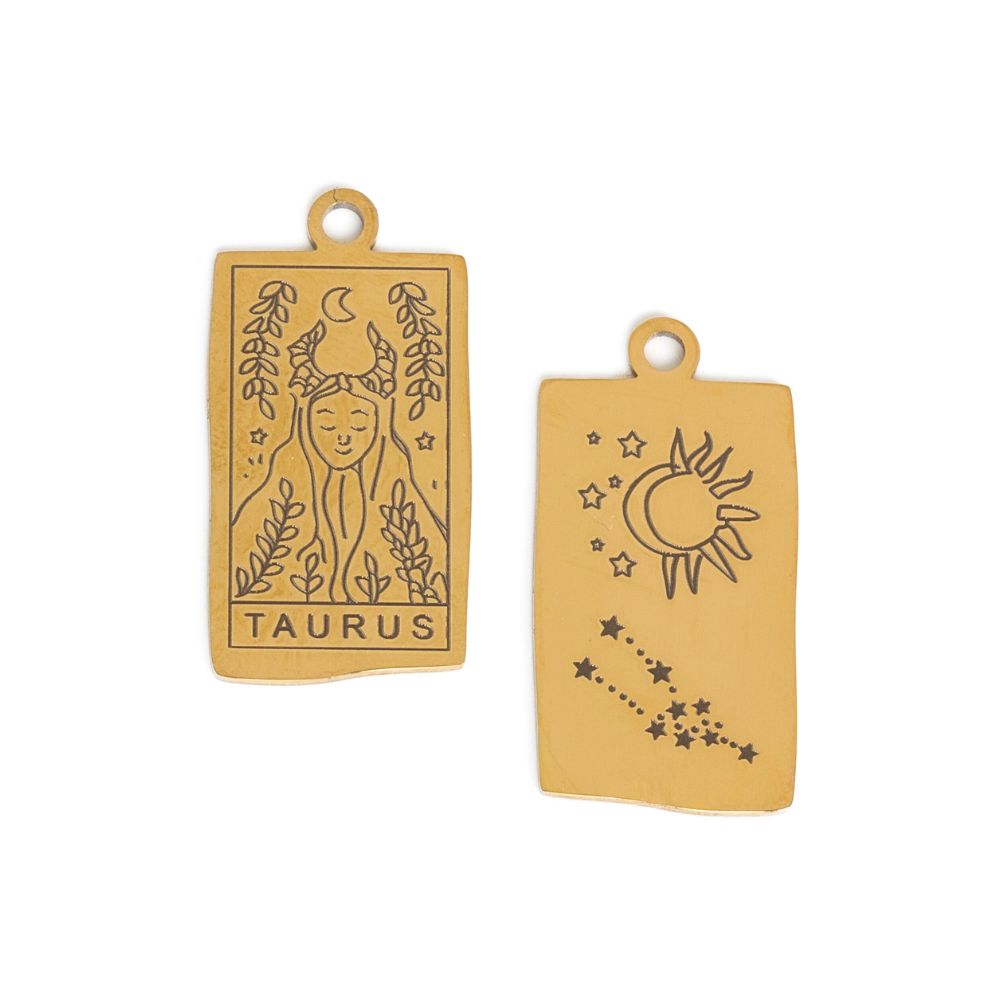 Prívesok z nerezovej ocele zlatej farby pre ľudí narodených v znamení býka (20.4 -20.5.) K prívesku budete potrebovať spojovací krúžok alebo šlupňu, ak ho chcete zavesiť na nerezovú retiazku.