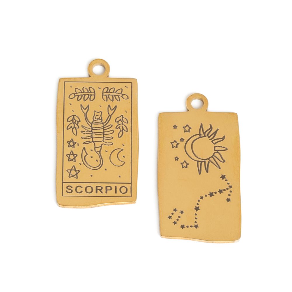 Prívesok z nerezovej ocele s motívom znamenia aj súhvezdia škorpión pre ľudí, narodených medzi 24.10. a 22.11. K prívesku je potrebné prikúpiť spojovací krúžok, aby sa dal zavesiť na nerezovú retiazku.