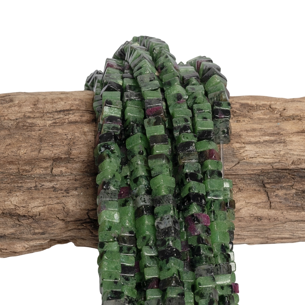 • Zoisit s rubínom korálky 2x4mm štvorce polšnúra