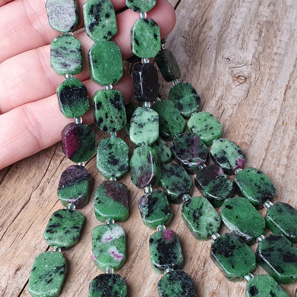 - Zoisit v rubíne korálky 10x14mm obdĺžnik polšnúra
